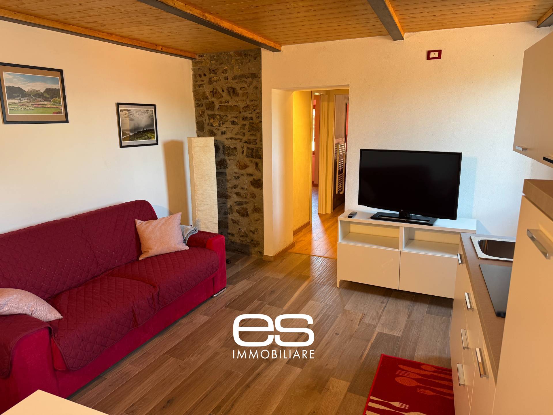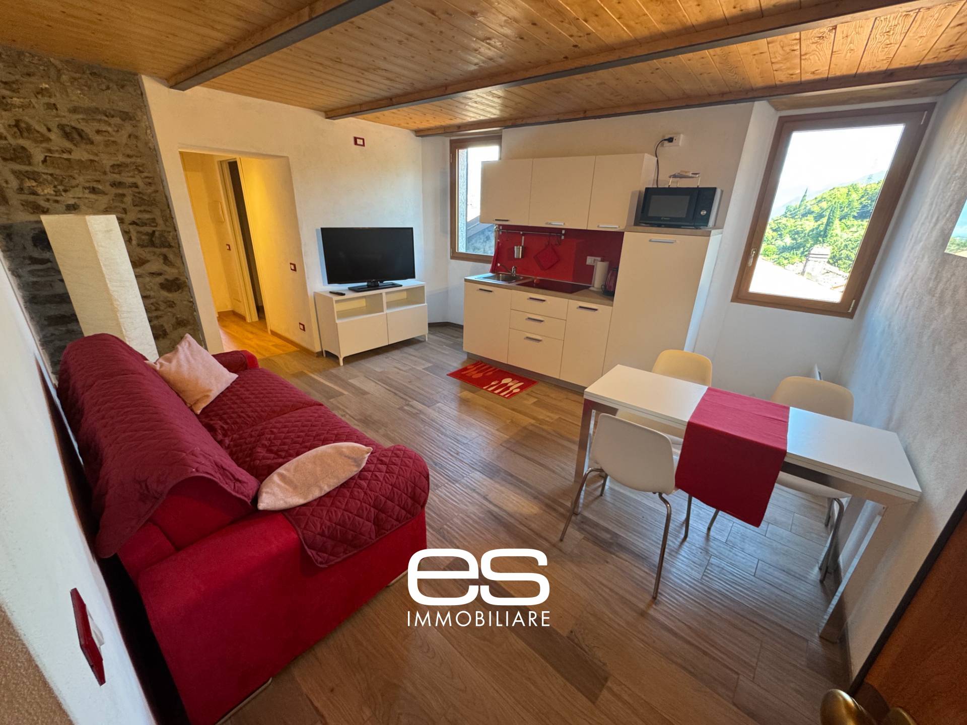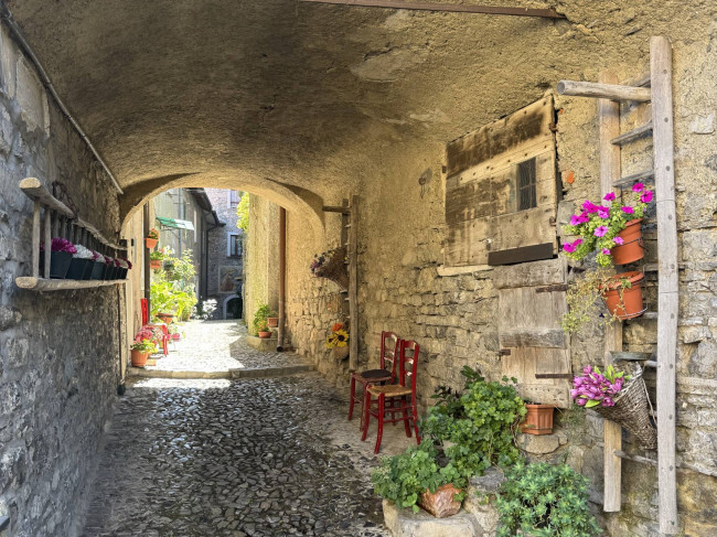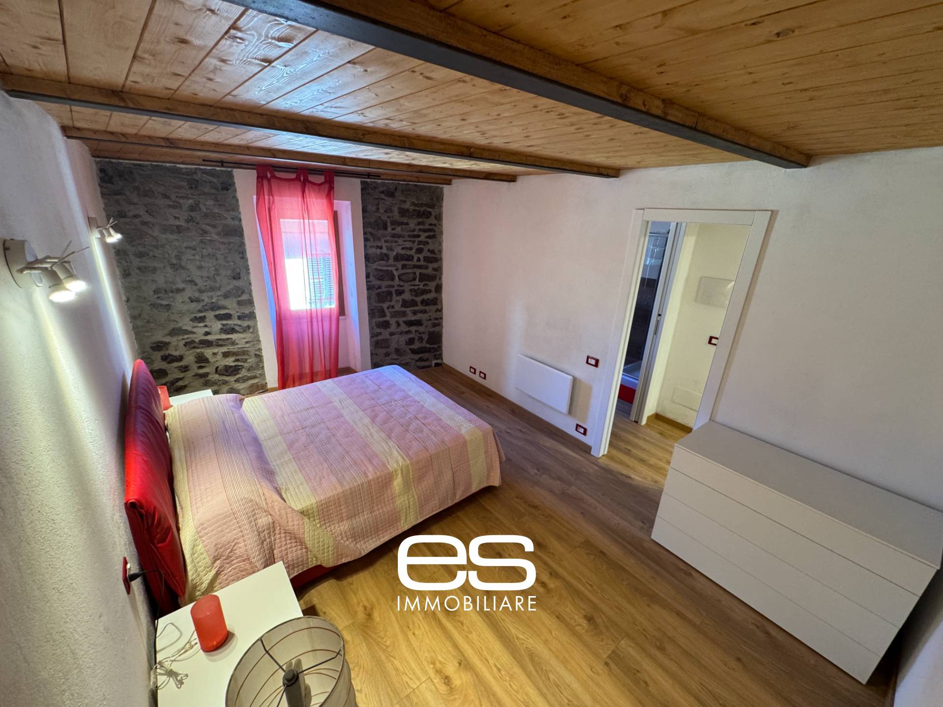 L'immobile è così composto: ingresso sul luminoso soggiorno con pietra originaria a vista, angolo cottura dotata di piano a induzione, disimpegno che conduce al servizio igienico finestrato con box doccia e finiture di pregio, camera matrimoniale e comoda cabina armadio. La soluzione è l'unione perfetta di materiali storici come pietra e travi a vista e modernità di una completa ristrutturazione. Completa la proprietà la cantina al piano seminterrato.